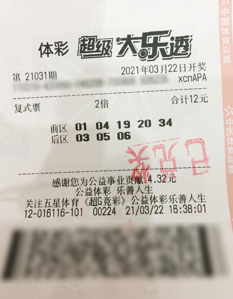 3月22日,超级大乐透第21031期开奖,前区开出号码“01、04、19、20、34”,后区开出号码“03、05”。全国共开出27注一等奖,上海中得其中2注基本投注一等奖,奖金为1086万元,幸运彩票来自浦东新区航头镇鹤沙路191号的16116体彩网点。