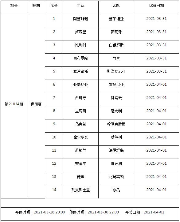我中心制定了2021年中国足球彩票胜负游戏(14场、任选9场)、6场半全场胜负游戏和4场进球游戏3月26日-4月1日的竞猜场次安排(具体附后),其竞猜对象、开售时间、停售时间和计奖时间均以本文为准。